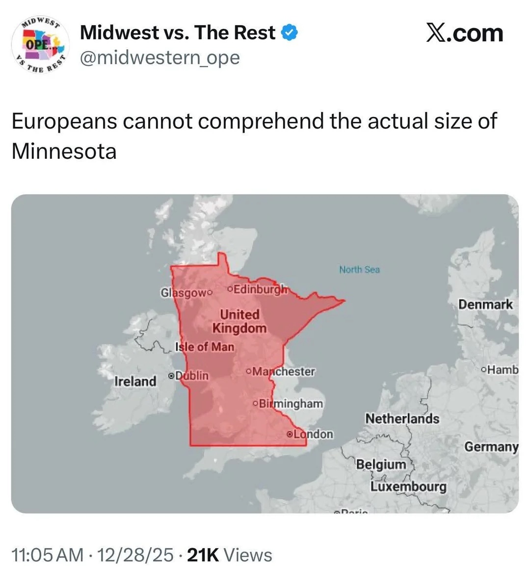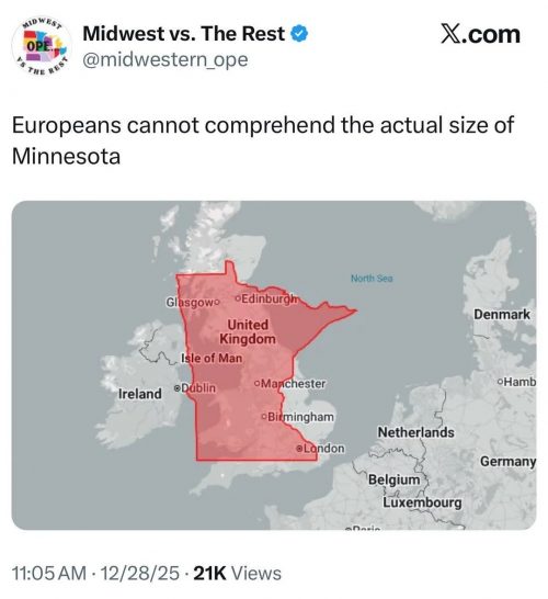 Relatively speaking, Minneapolis is Birmingham, while I live somewhere in the Irish Sea off the coast of Dublin. We do have far fewer dialects over that distance.