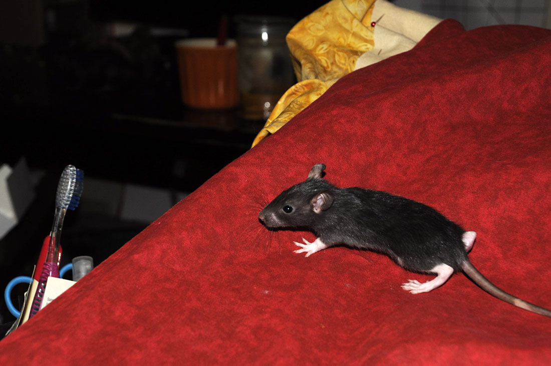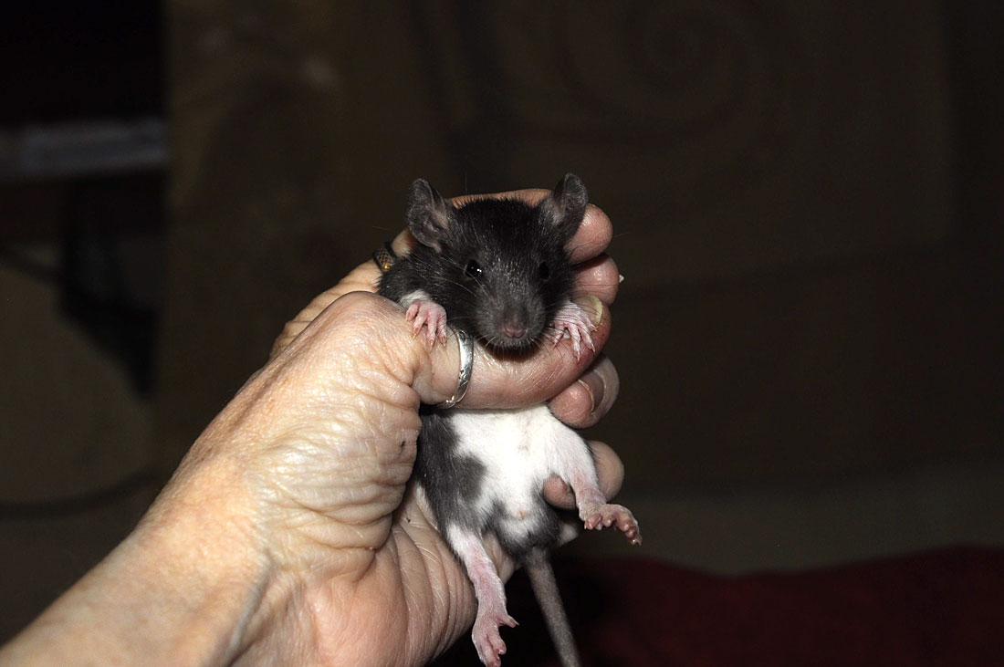 File this one under: FFS. My apologies to PZ, for pestering him unnecessarily. I’ve had to change things in my studio lately, to accommodate all the ratlets, and didn’t realize the rats could get up on the computer station. Even more stupidly, I left an admin page open, and left my keyboard on. In their usual mysterious way, they hit a perfect storm of keys, and borked everything here. It’s all fixed up now, so all you wonderful people who commented today, you’ll have to do it again, I can’t figure out how to move comments (if it’s even possible – the rats could probably do it.) For your trouble, here’s Ville, one of Violette’s boys, named after Ville Valo, because of the wicked cute.
