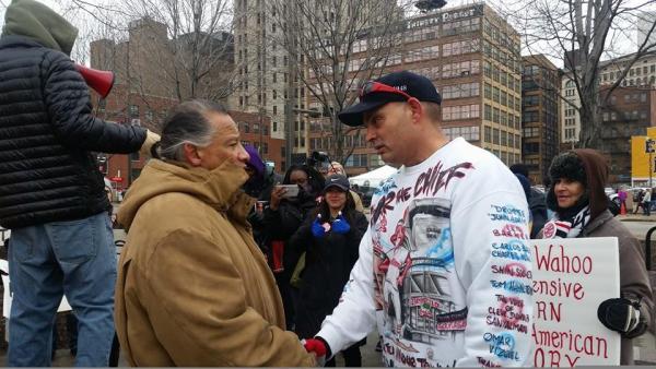 Two years ago, a photo went viral of Cleveland-based American Indian Movement activist Robert Roche and Indians fan Pedro Rodriguez who had painted his face red and donned a fake headdress while wearing a T-shirt that read, “Fear the Chief.” Rodriguez claimed he “was honoring” Roche.