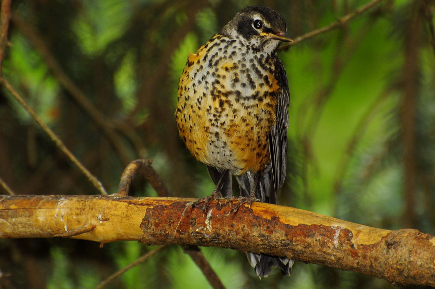 Baby Robin. Yes, I used a flash, it was cloudy, on the dark side, and baby was deep in the pine, so I opted for flash rather than super grainy from high ISO. All photos are 1500 x 996, click for full size.