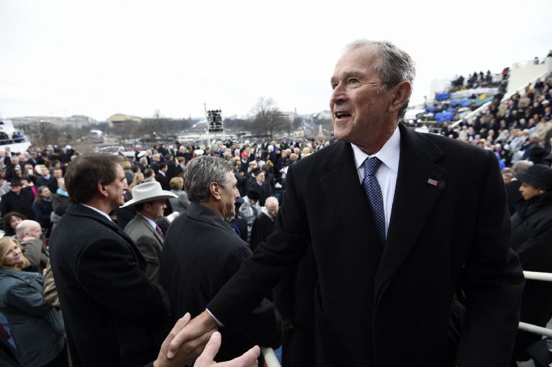 Former President George W. Bush leaves after the presidential inauguration on Capitol Hill in Washington, Friday, Jan. 20, 2017. CREDIT: Saul Loeb/Pool Photo via AP.