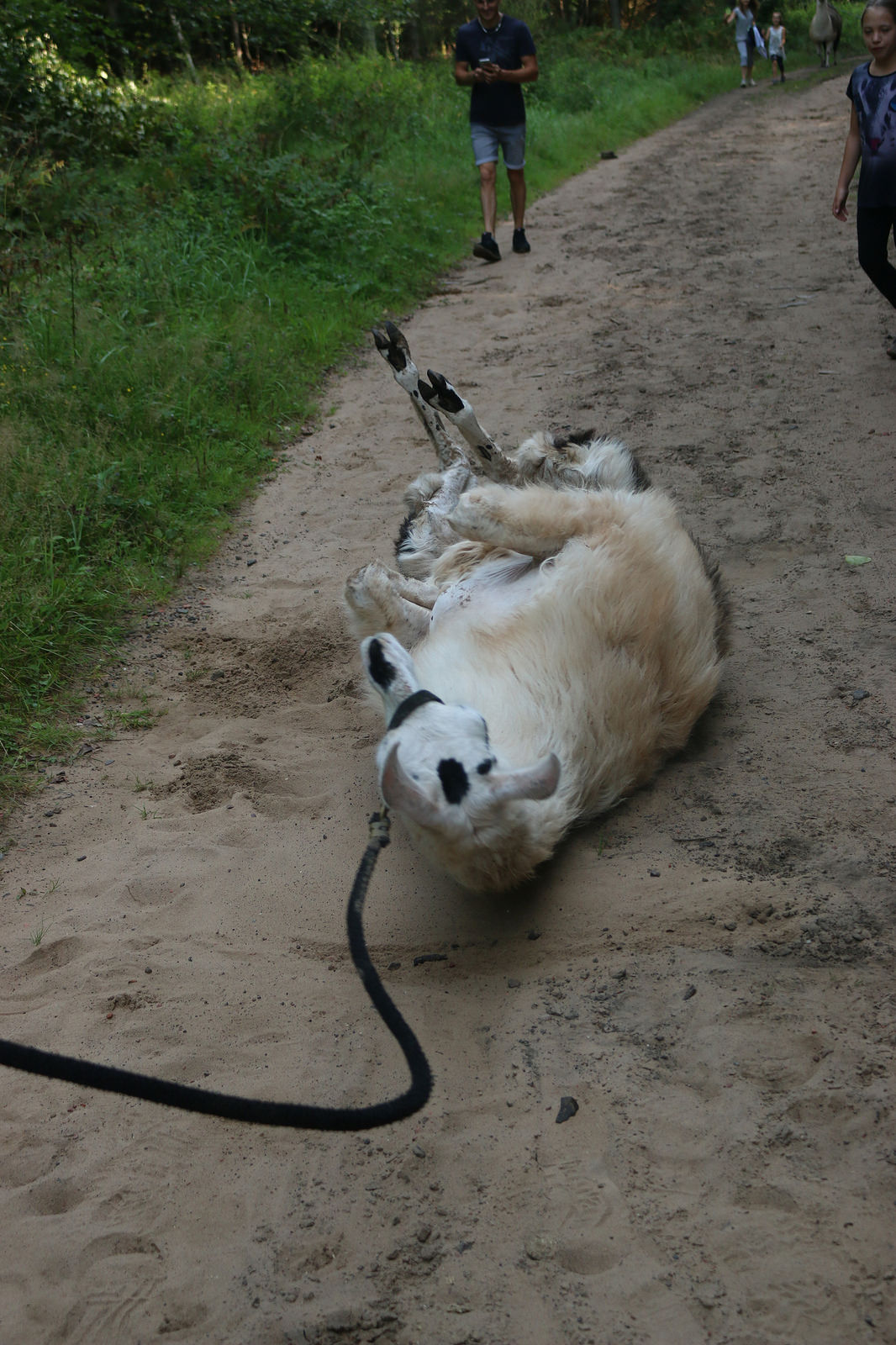 The sandbaths are the reason why kids must not hold the lead alone. Imagine a flying kid over a rolling llama