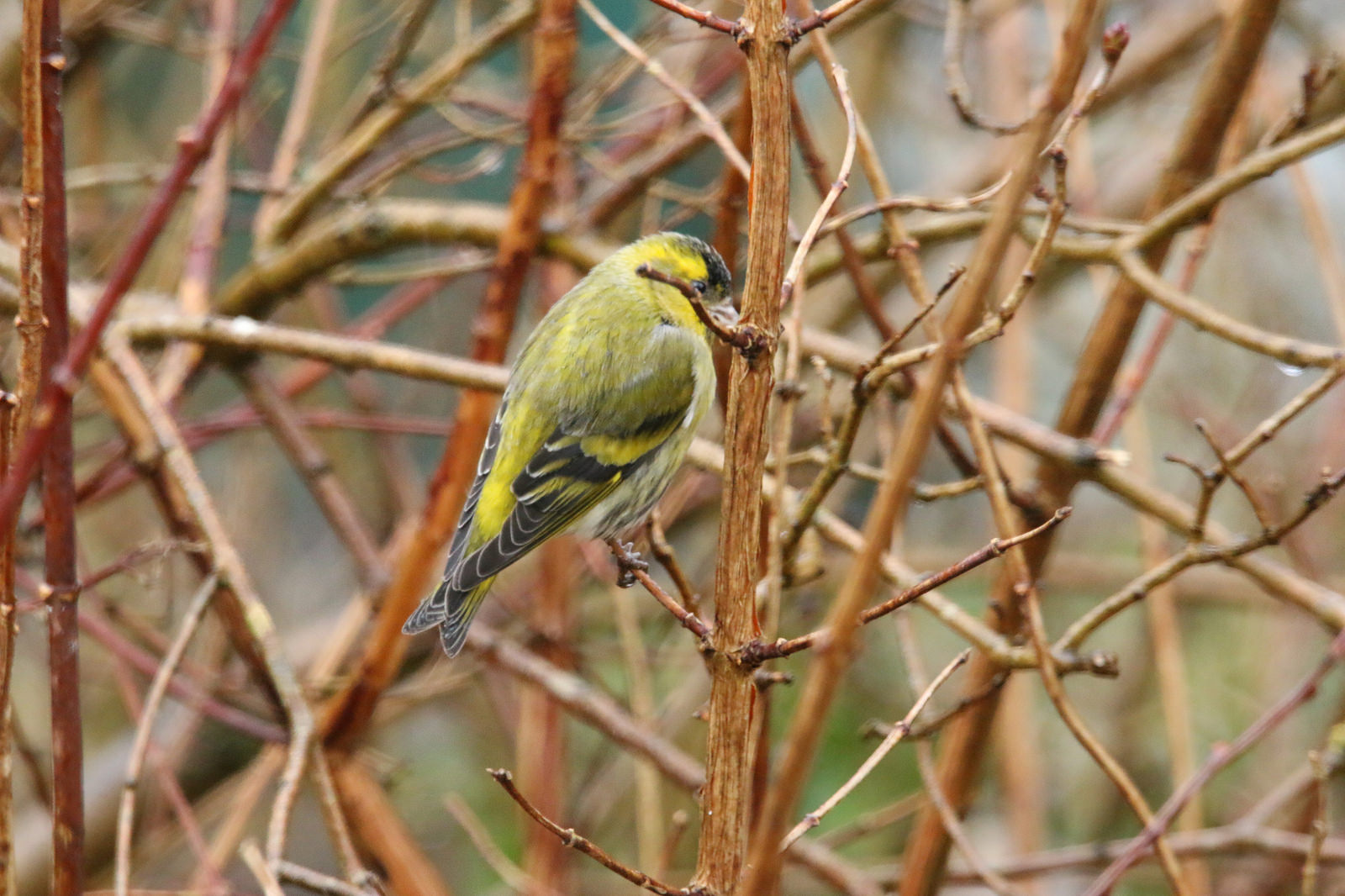 Siskin, the males are more brightly coloured with the black caps. Not long ago we had a female one from Charly.
