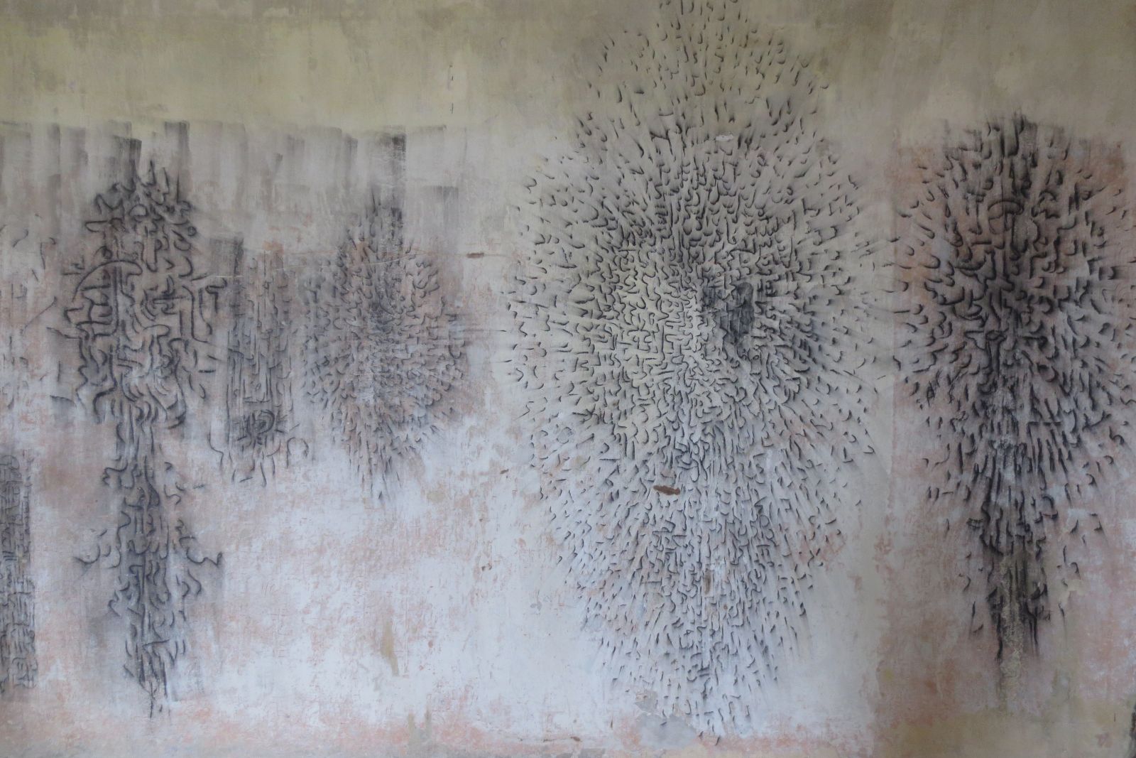 From rq: Wallpaper, wall art. This is an abandoned school down the southern half of the country. The first is layers of wallpaper/paint (couldn’t really tell), the second two are a local artist’s work for a nature-focused show that used the building as canvas and location. Click for full size!