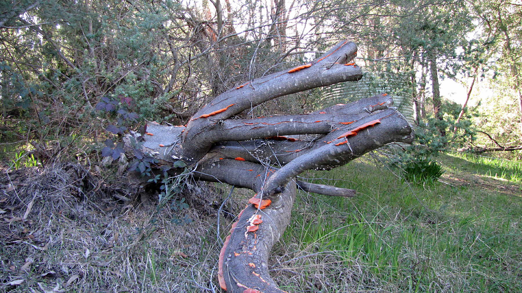 Beautiful blobby blobs. The colour is reminiscent of the colour freshly cut alder wood gets, for a while. So it looks a bit like alder logs doing the same thing that frozen mozzarella sticks that have been kept in the oven a bit too long do.