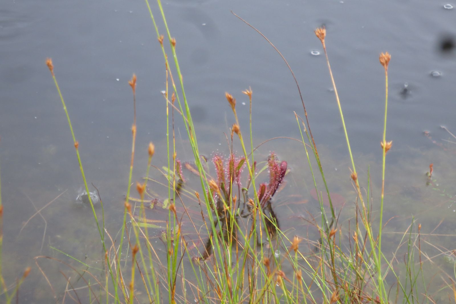 There were two species, one which was growing all over the peat (near the trail -- I got a few shaky photos, but to get closer I’d have to get off the trail, and there is no way I will go off-trail in that bog…), and this one, which grows at the edge of the marshpools (previous comment re: off-trail applies). The lighting was poor (rain, overcast, finally!). I also had a very worried 8-year-old hovering, ready to catch just in case I would slip while taking a photo, so my pictures of the other species are extremely blurry. Moi? I chalk it up to predators being good at camouflage…