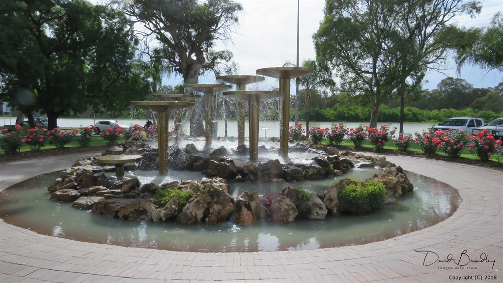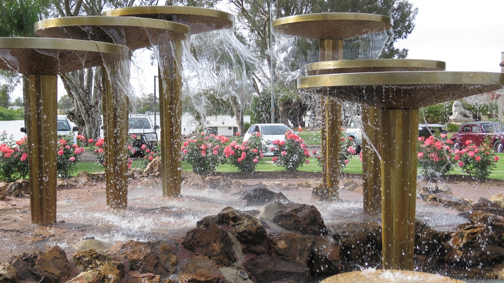 There are roses in this set, but the main feature is the Harry Clark fountain commemorating the 1956 floods. The main fountain structures represent wine glasses as this is a major wine growing region.