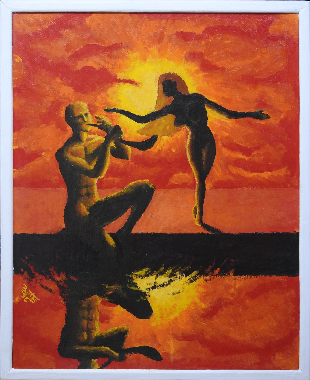 So today for lack of better material, here is one of my paintings from way back when I still had the strength to actually do something and managed to follow through. It does not have a name (none of my paintings has) because I do not like to prompt people what they are supposed to see and how to interpret it.