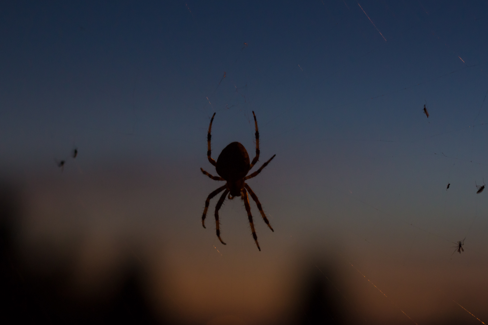I love the first photo, the successful silhouette with a hint of golden lining. It seems the spider is staring wistfully into the sunset and dreaming a spider daydream.