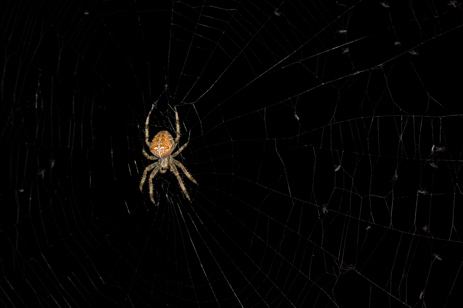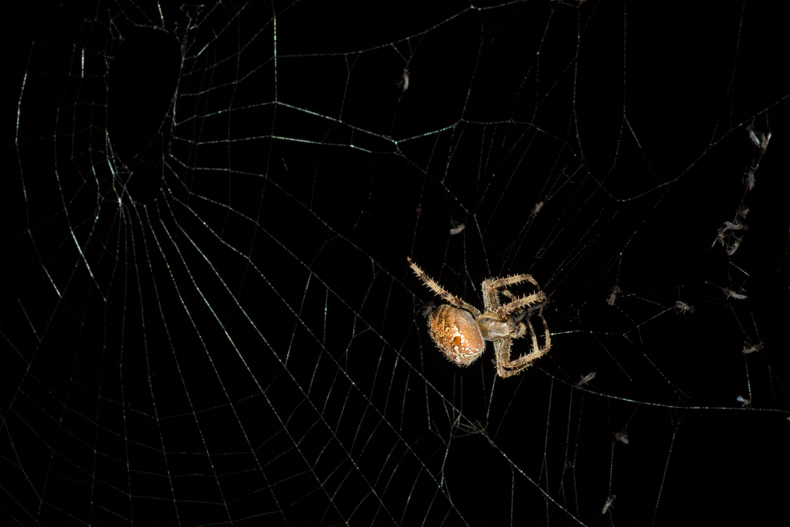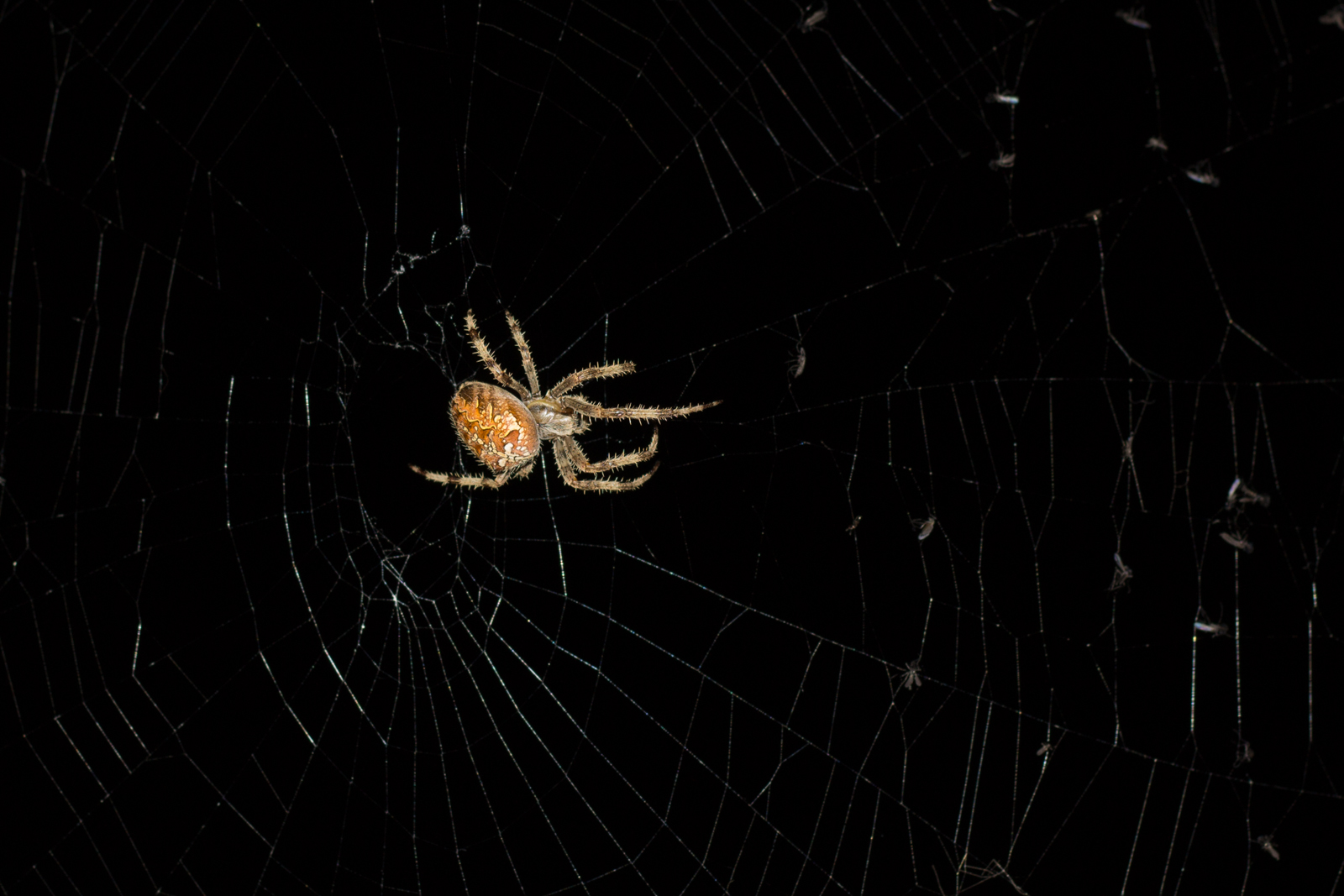That spider and it’s web are beautiful, specially with the flash of the camera. Well done photos!