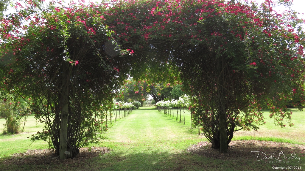 These bright, cheerful photos are from Ruston’s Roses courtesy of DavidinOz. This area of the gardens looks perfectly set to host a wedding. The path is lined with pure, white roses and at its end is a lush canopy of deep red roses signifying love. David didn’t specify, but I think Ruston’s must host a few weddings here. I was most delighted by the wandering red rose who has traveled far from home alone. Perhaps it was for love.