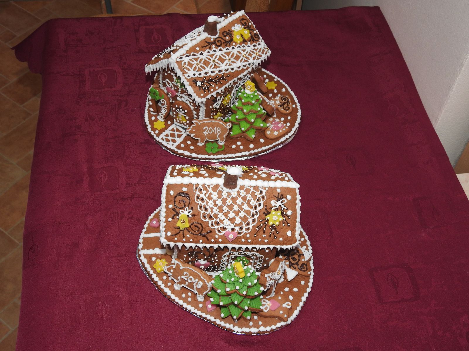 Wow -- I’ve never seen gingerbread houses with so much fine detail on them. I especially like the trees and the frosting “icicles”.