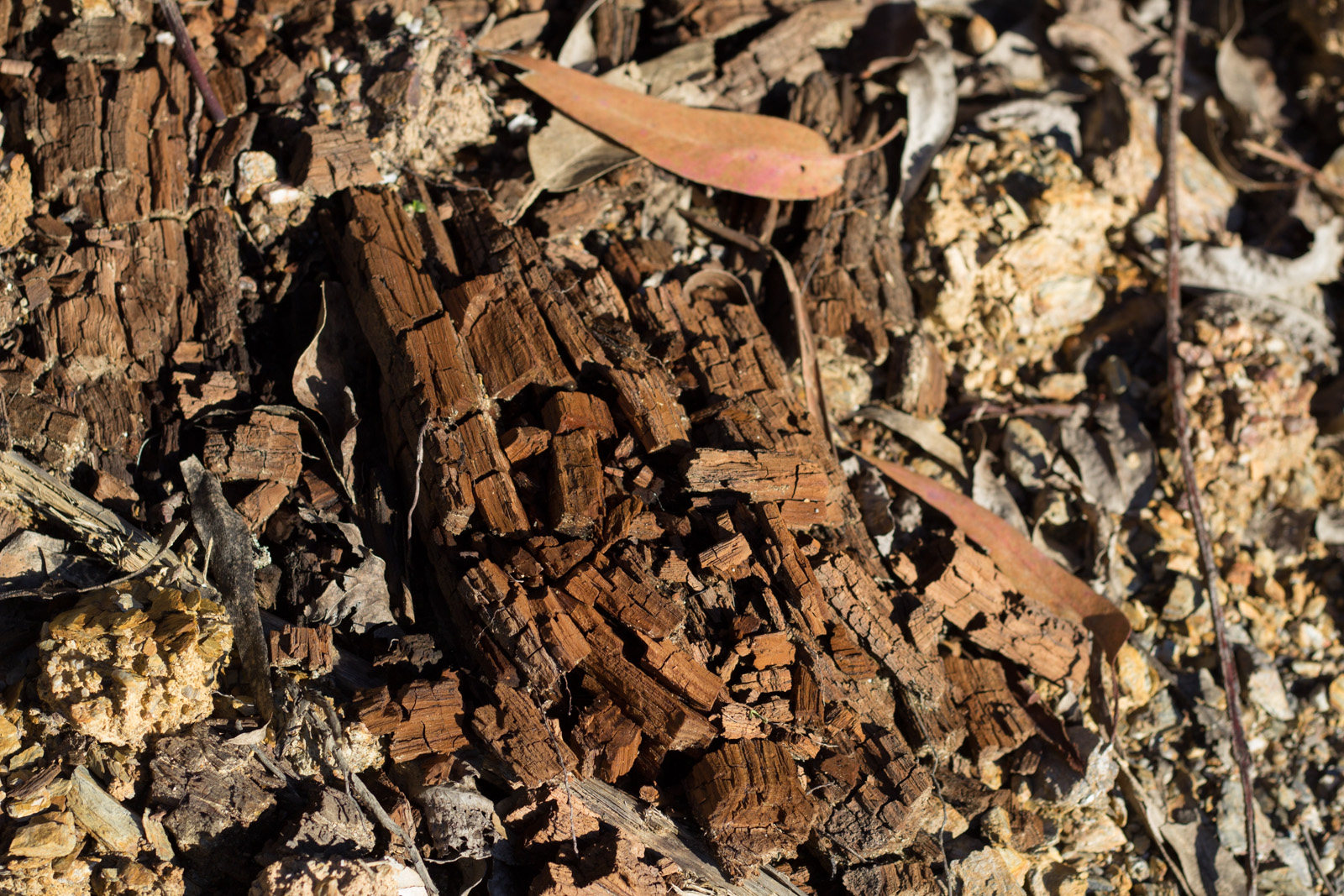 This level of habitat destruction makes me sad, but I’ve ranted enough about eucalypts on this blog. Let’s look one last time through the branches to wave back at the limestone hill we explored in the previous chapters and then focus on the ground. Because trust me, the rocks here are truly marvelous. And there are some puffballs too.