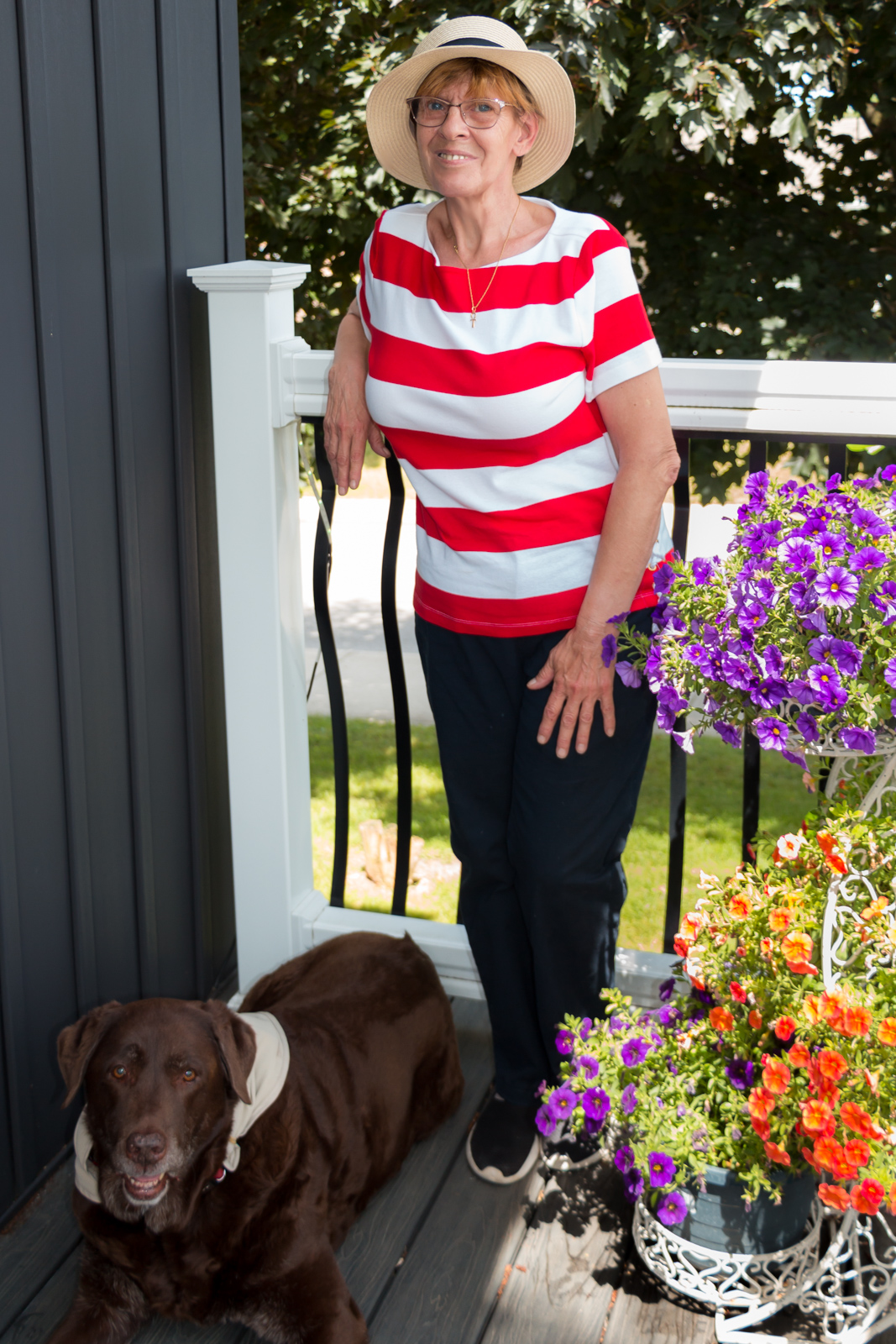 Last year on Canada Day Jack and I celebrated our 100th Jack’s Walk. This Canada Day we’re celebrating walk #358 …and still counting. We had a lovely, slow walk around our little forest this morning and I would love to show you a picture from there, but I forgot to take my camera. It’s one of those days when I’m just glad I remembered shoes (I have been known to show up in slippers) and water for the dog. To make up for the lack forest, here is a photo of Jack and I on our front porch as we wish you our annual Canada Day greeting. I wonder how many walks we’ll be at by next July 1?
