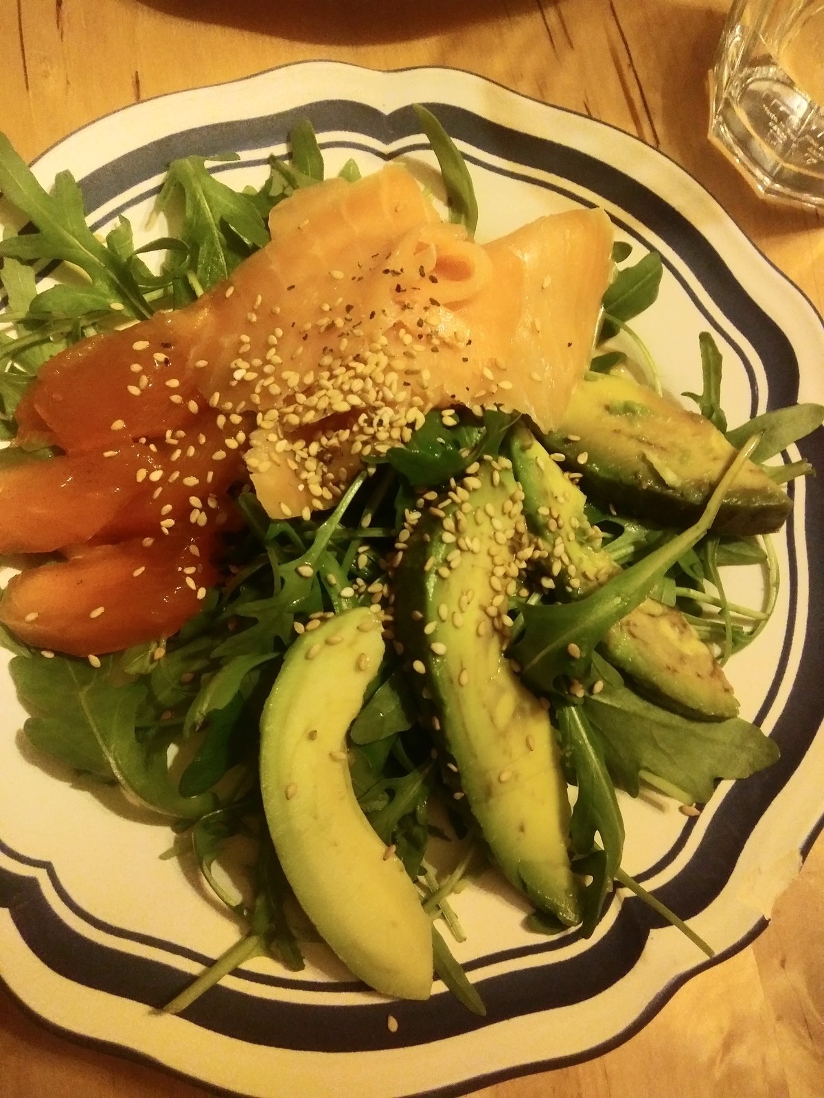 Ruccola, persimmon, avocado and sesame. While I’m pretty sure that nobody in Asia ever created that dish it was delicious and a good light starter.