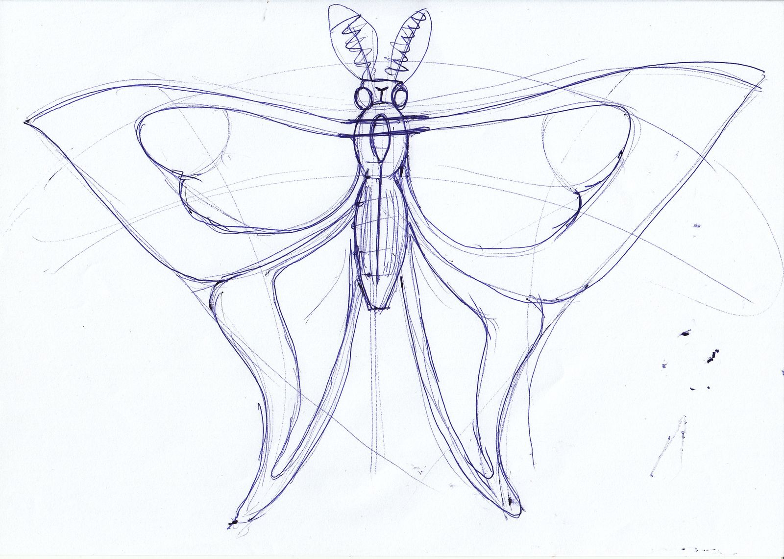 First I browsed the net for inspiration and I looked at especially the beautiful saturniid moths and then I made a sketch, with a biro on paper.