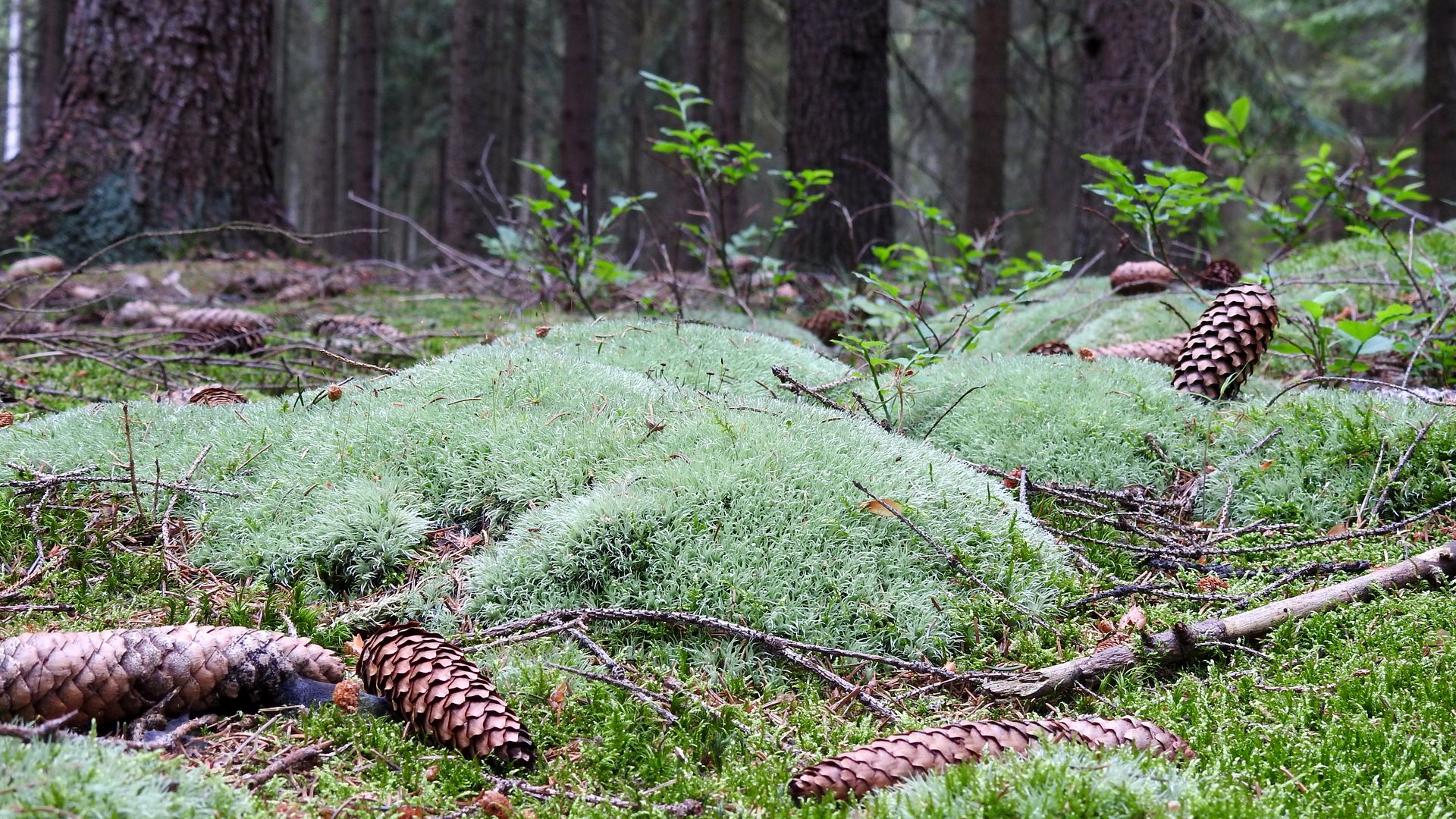 The perspective on this completely threw me off. Part of my brain keeps thinking that they are big hills, and the other part rightly tells it that it#s silly because of the pine cones.
