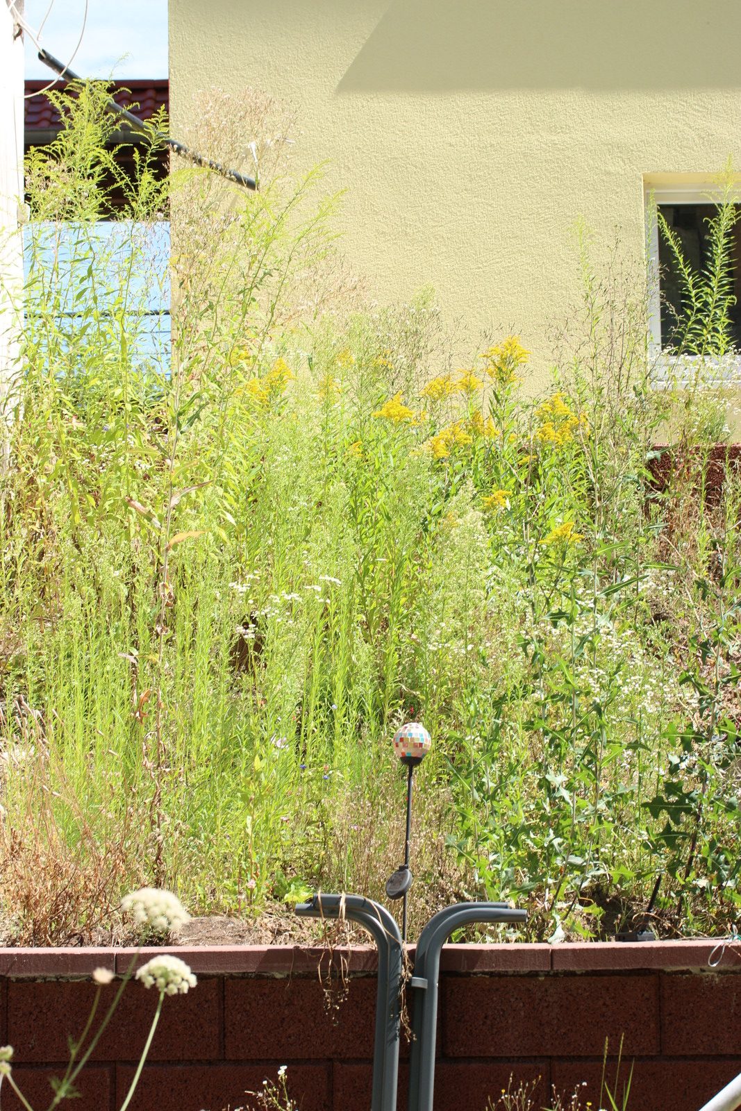 The small area created at the top has been sown with “butterfly meadow” and “wildflower mix”. You can buy these seed mixes easily in Germany as many people are trying to bee more friendly. I also always toss a few handful on the rest of the area, which remains in pretty disarray.