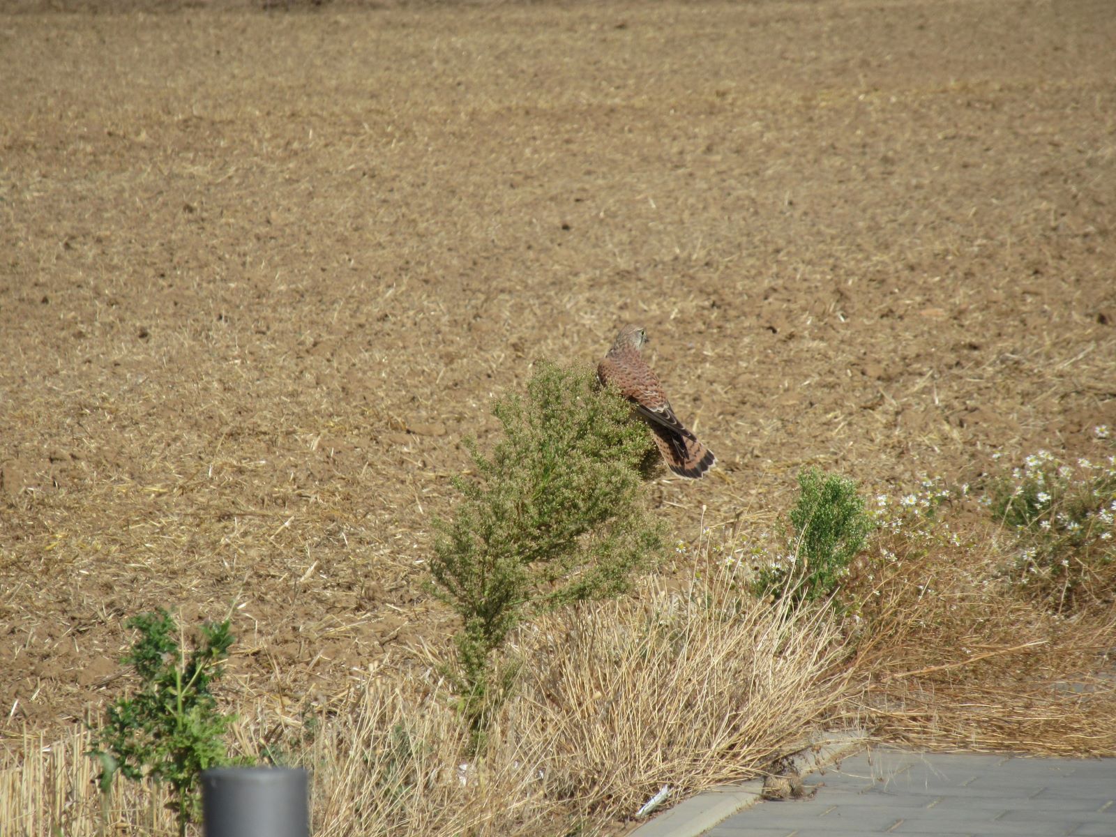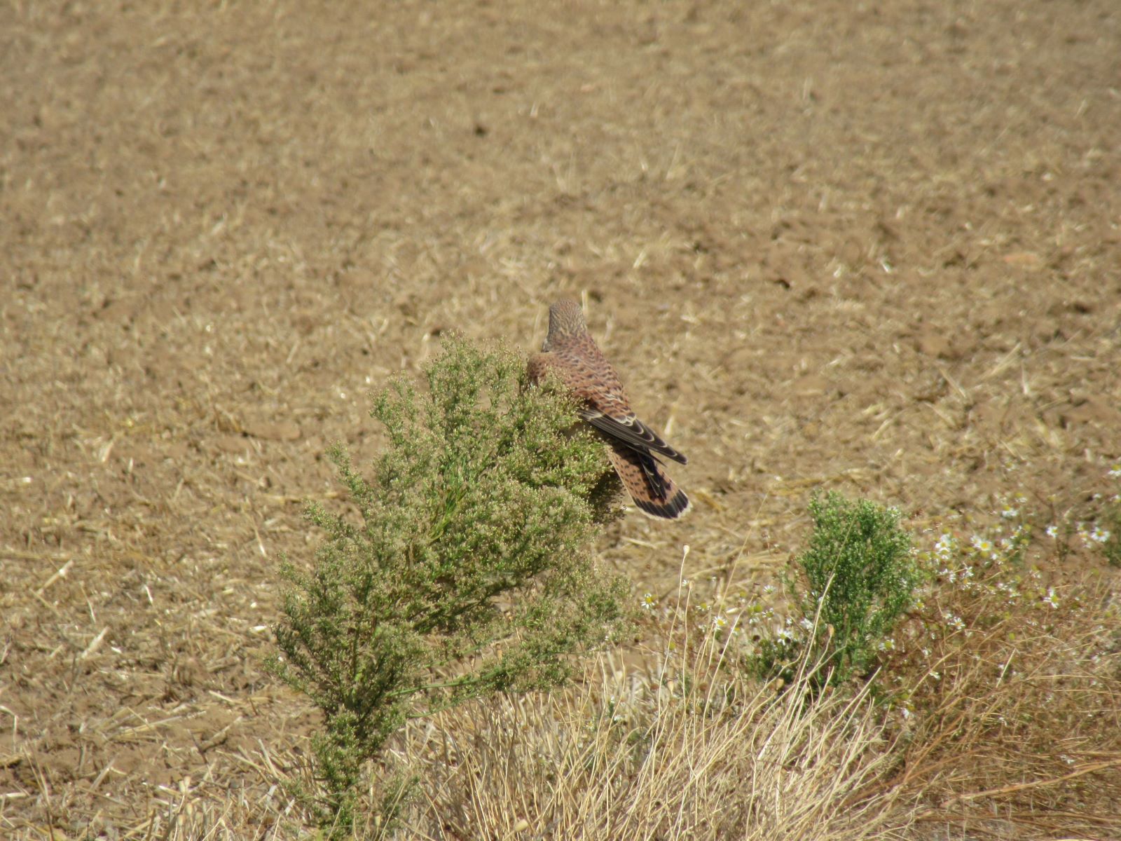 I was driving to work and I saw this kestrel (At least, I hope this bird is a kestrel xD) trying to land in low bushes and failing. So I figured it was a young bird.