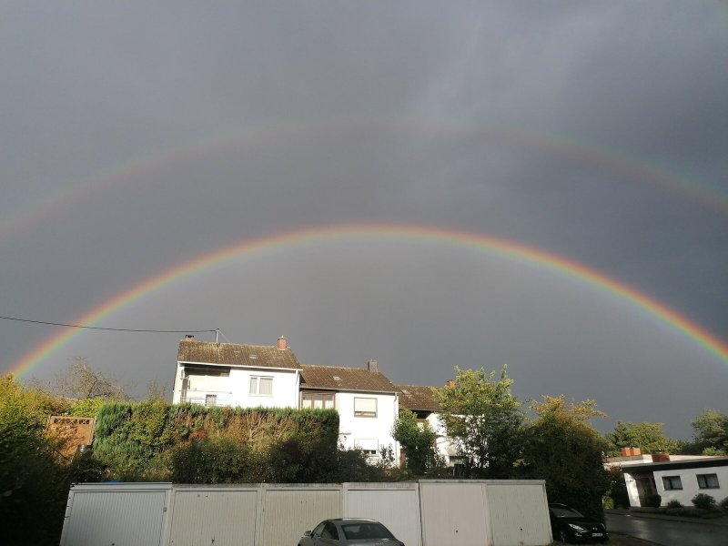 Beautiful! If one of the three houses is yours it seems right to me that it should have a rainbow over it, the centre of your creative and family life.