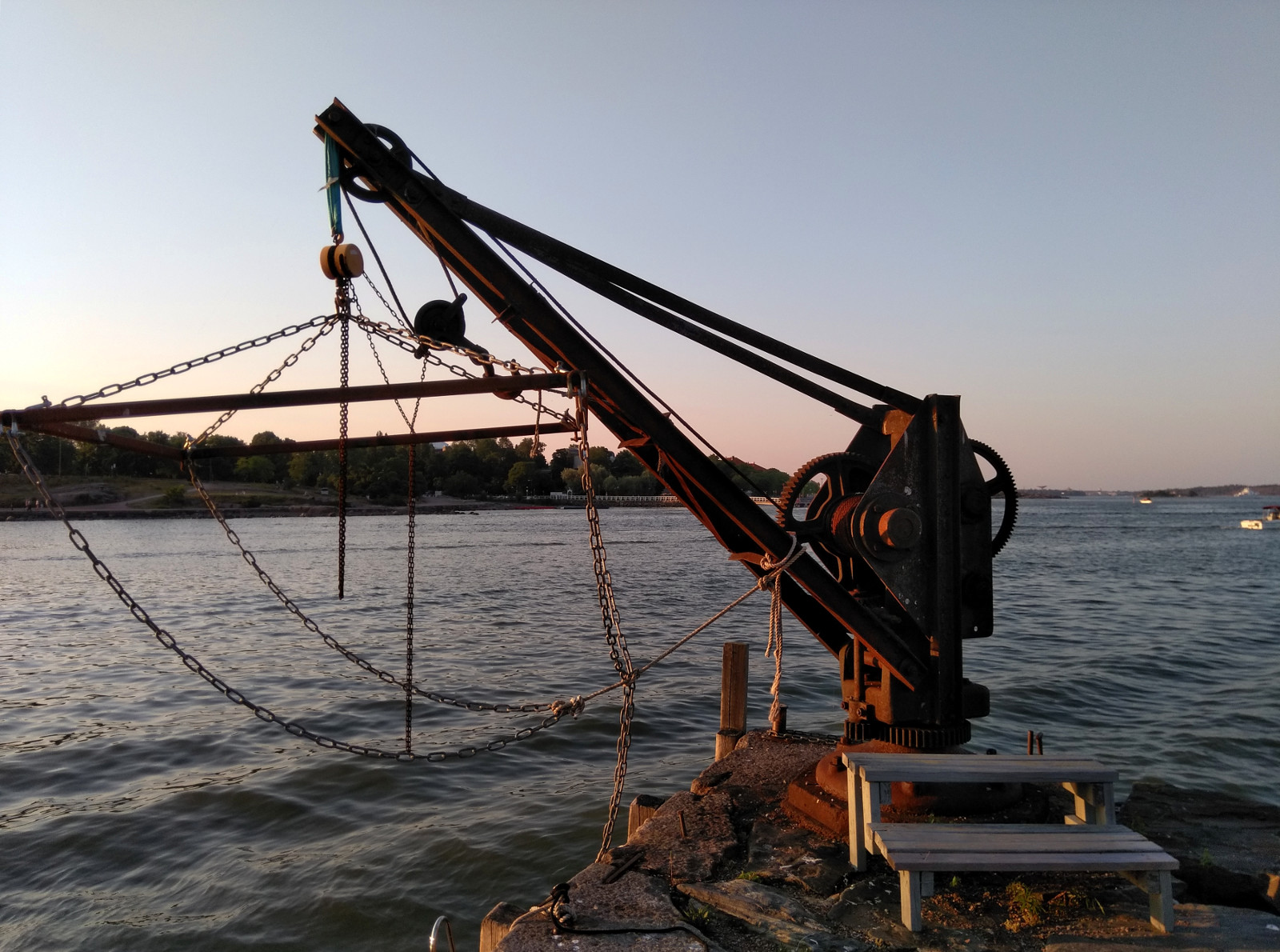 Now we’re back on the pier. The signal for the boat has been raised (not in the picture), but we have some time take a look at the crane. The other end of our boat trip is the white pier behind the crane.
