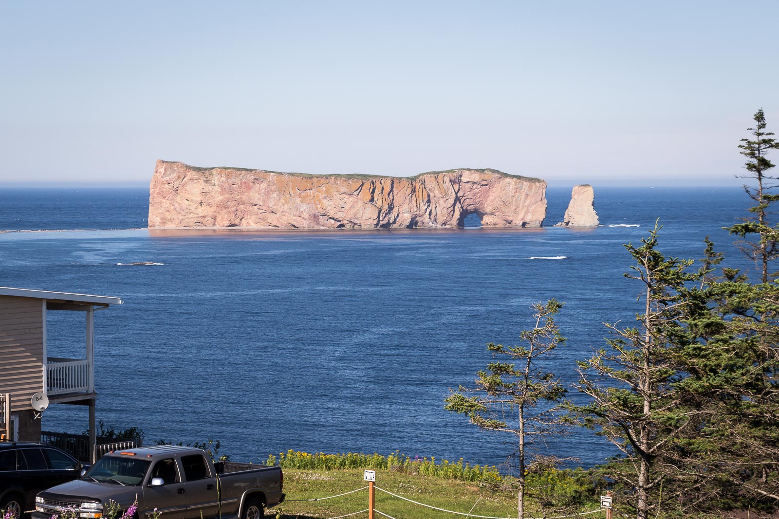 It’s been a long and difficult journey this year, but we’ve finally arrived. We won’t have internet access until tomorrow, but once we do I’ll share more photos and stories. For now, I’m still posting with my phone. This is the classic tourist photo of the Perce Rock, but it doesn’t really give any idea of scale. I know a better spot to take this photo, but there are so many tourists in town today that I just couldn’t get there.