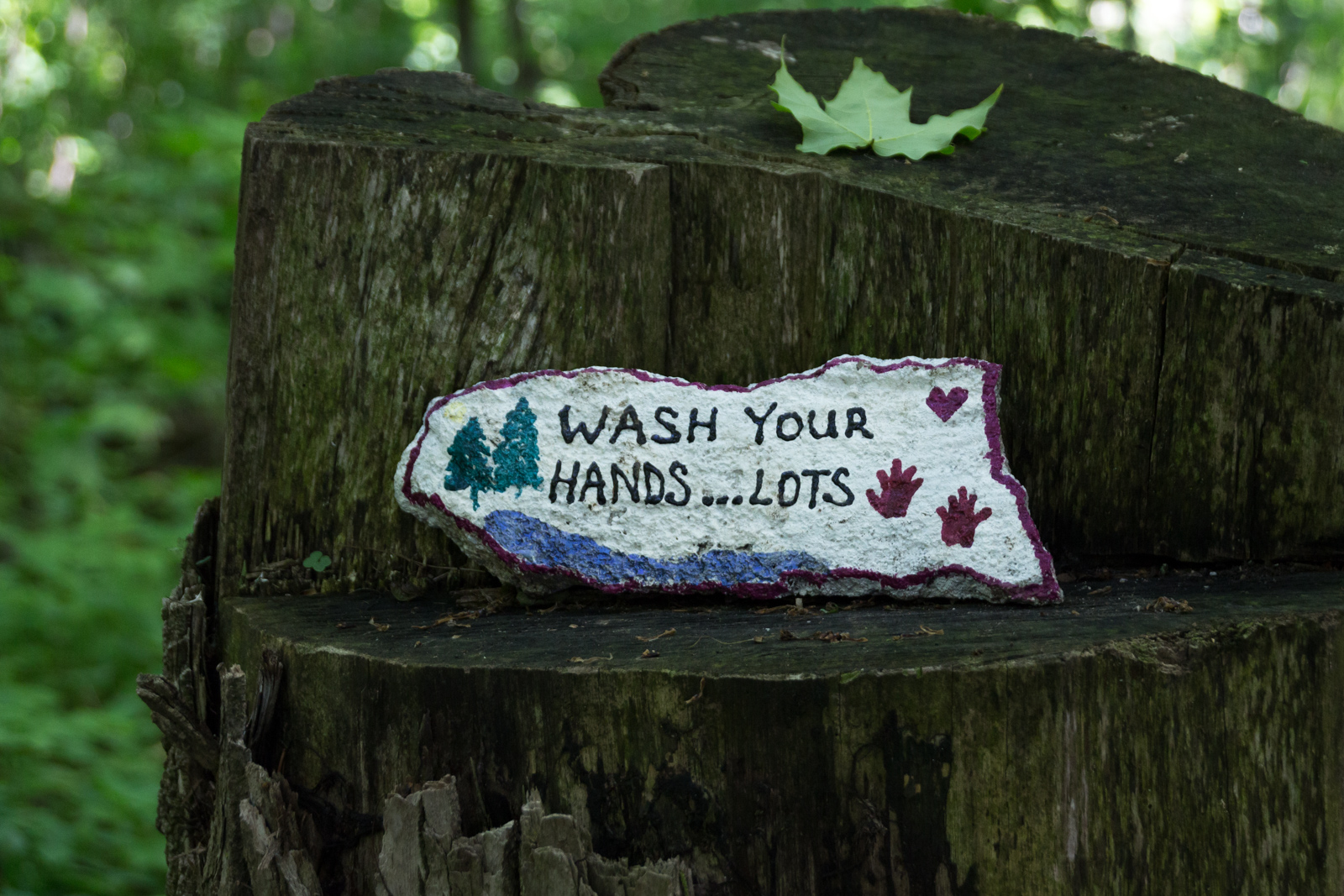 Jack and I even managed to get out to our wee little forest for a walk, today. We went slowly and watched the fairies flit for a while and then we paid a short visit to Gnorman, who was out plowing with a team of voles. The trio joined us for a cold drink of water before getting back to their work. It was a most pleasant day filled with the cheerful, company of friends, glorious sunshine and the quiet beauty of our native woodlands. It even came with a pretty reminder to stay safe and wash our hands… lots.