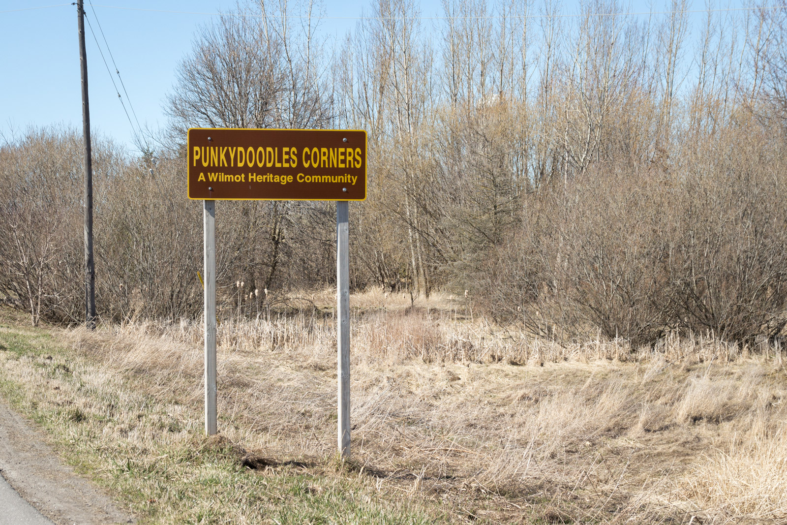 “Alright, well, let’s get going,” I said, mentally trying to plan for an all-day event. We made our way to the highway, and it wasn’t long before we reached the Drumbo exit. We turned south, and soon there it was… the sign for Punkydoodles Corners. I pulled over and helped Jack out of the car.