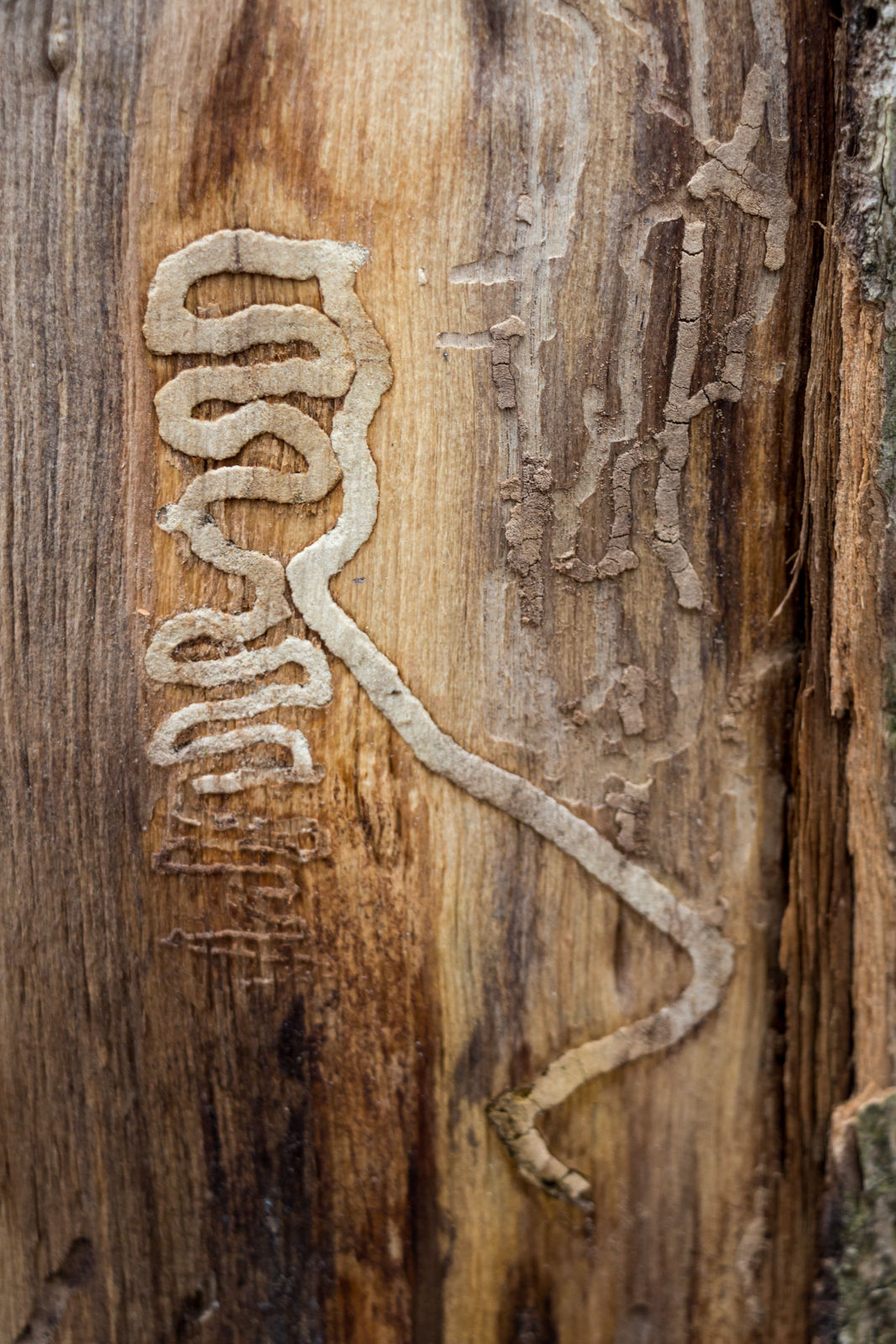 Recently, while talking with a couple of gnomes, I discovered that many of the markings we see on fallen trees and branches are actually a form of map-making done by the little people of the woods. I was told that they are mostly made by Gnomes and Elves, who are terribly forgetful, as a way of remembering where their caches of food are stored. I commented that they look convoluted and, after having a good laugh, I was told that they are convoluted for humans, but the little folk travel in circuitous routes because they like to see the sights and visit other little folks along the way. Well, then, I guess that explains it.