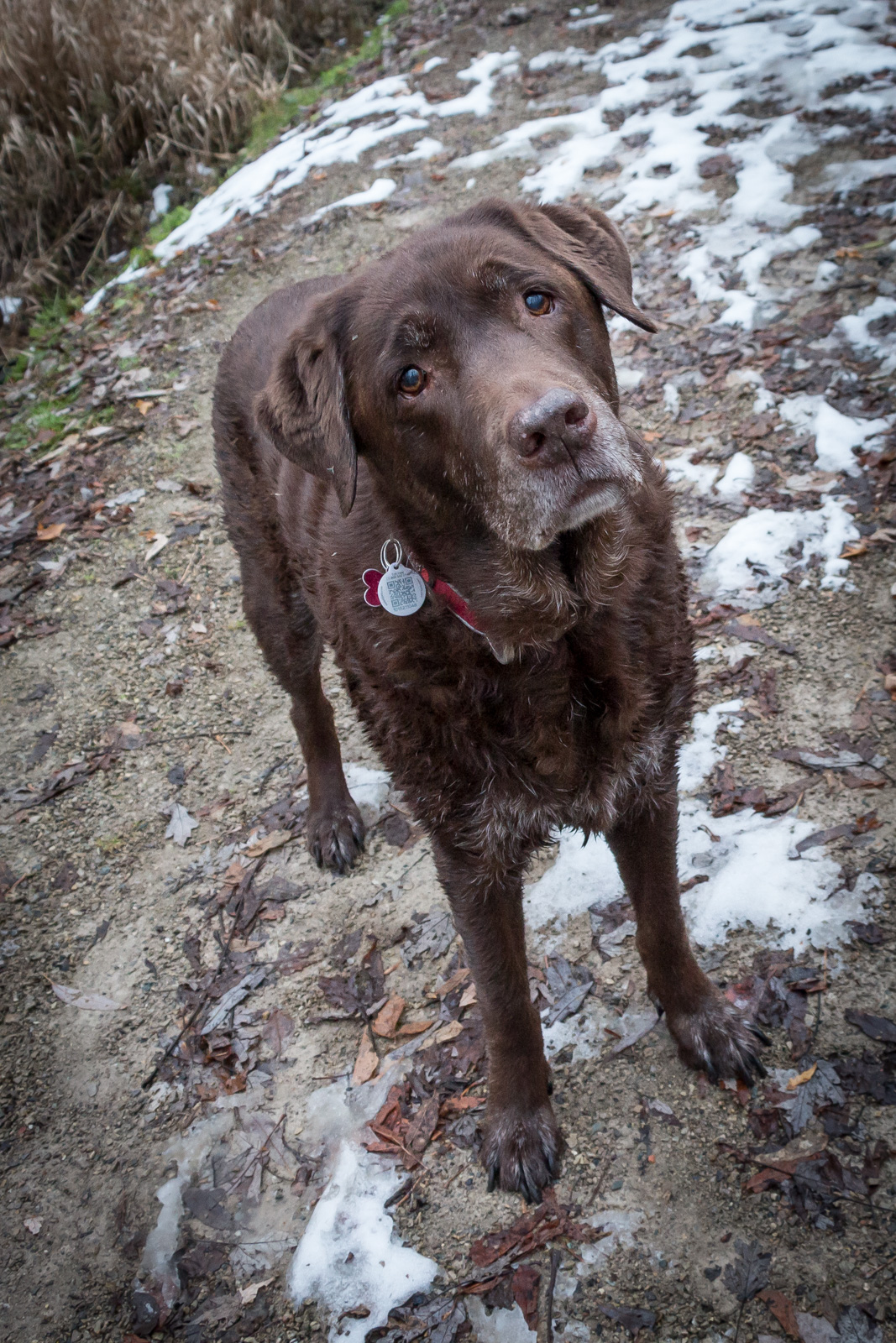It’s been raining here most of the day, and the landscape has gone back to looking like bleak autumn instead of the deep of winter. There isn’t a speck of snow or ice left, and I’m grateful for that. It sure makes walking Jack less fraught with danger and not nearly so physically demanding. Jack has mixed feelings about the weather. Today, for the very first time, Jack didn’t want to go for a walk. We stepped out on the porch, Jack raised his head and looked slowly to the right, then to the left, and then he turned around and asked to go back into the house. Sheesh! 2 days ago he was swimming in the frigid water of the river, and today he lets a little rain put him off. He’s a water dog for Pete’s sake. It’s even in his name. Officially, Jack is Wasserhund’s King Jackson Brown, and Wassserhund means ‘water dog’ in German. So my water dog didn’t want to go out in the rain.