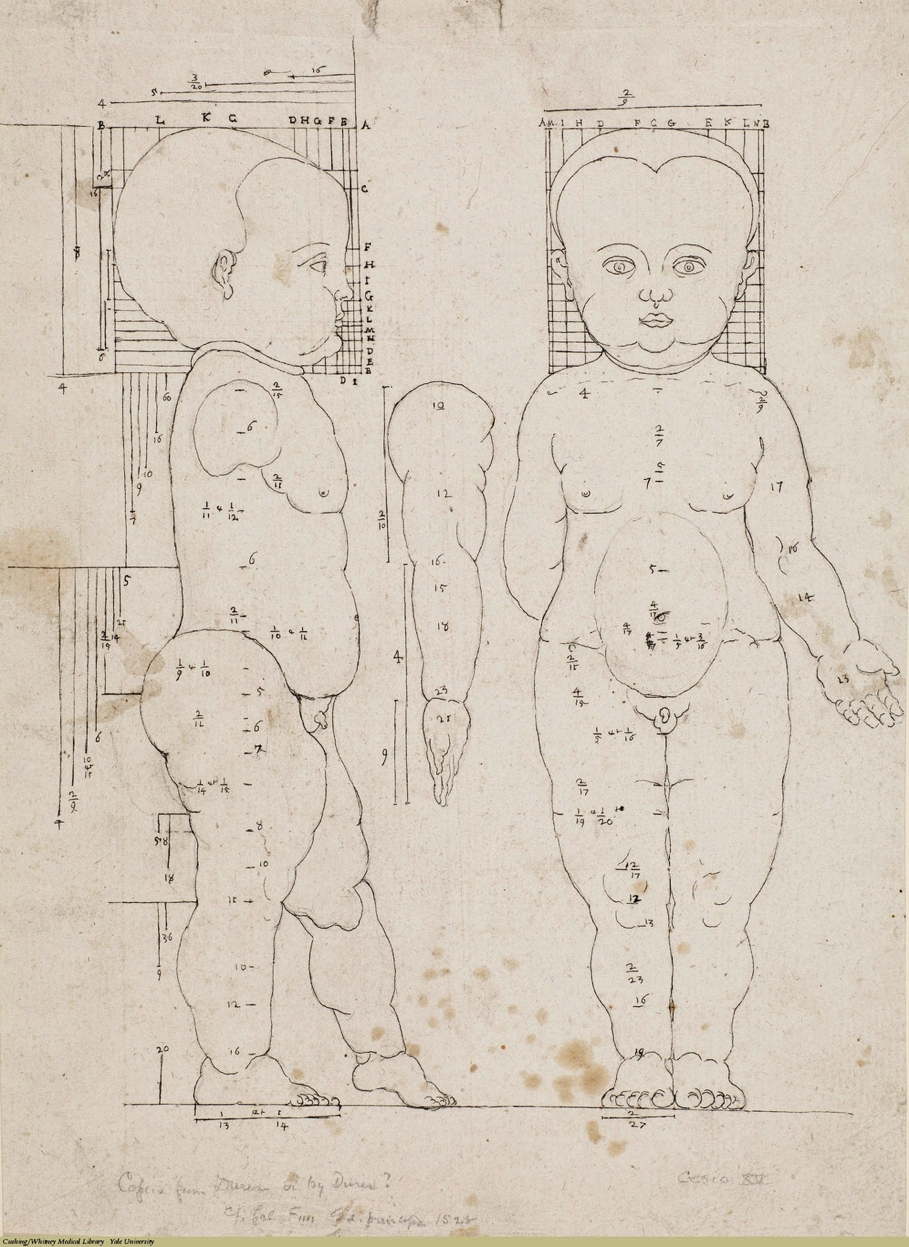A Study Of Proportions. Anonymous, Pen, Black Ink, and Pencil. Subject: Anatomy, Proportion, Anatomy In Art, Albrecht Durer.