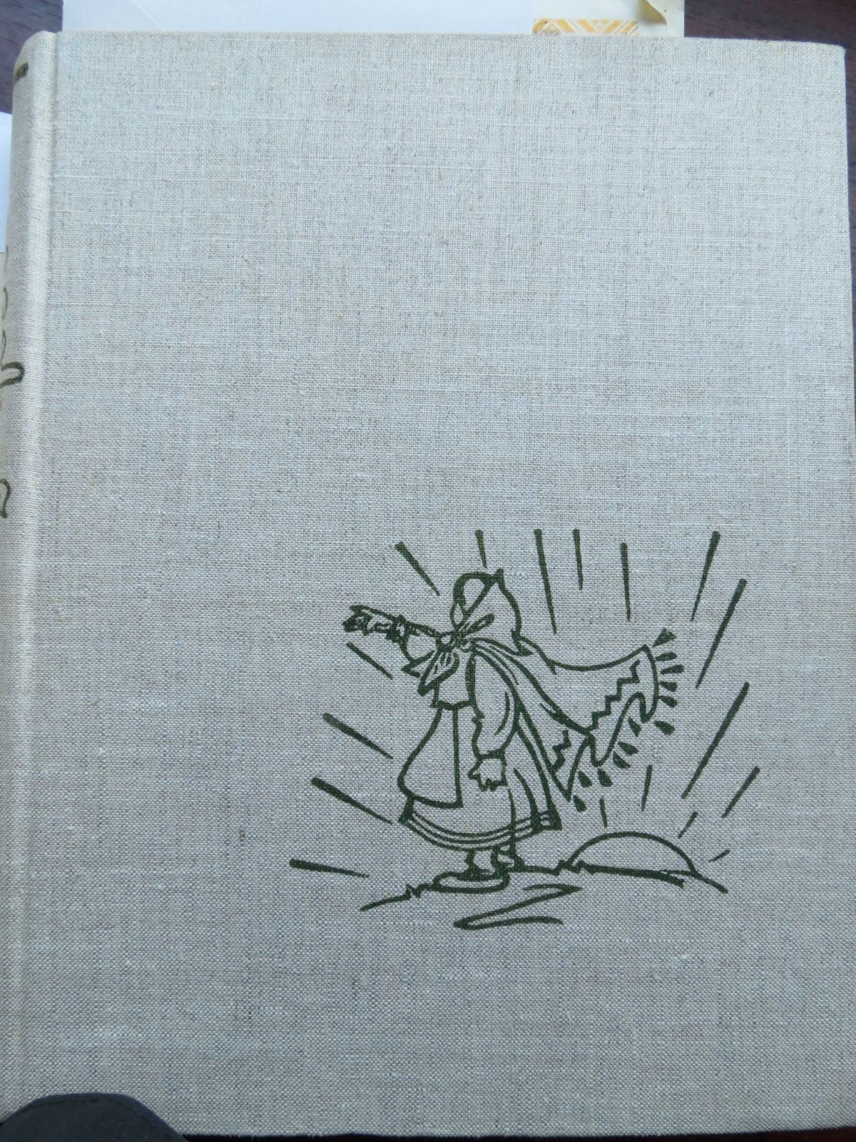 Then there is the fabric cover of the book itself- how I knew it, as the copy we had when I was growing up did not have the cover anymore. It’s a dark green print on rough (almost canvas) textile, also the spine.
