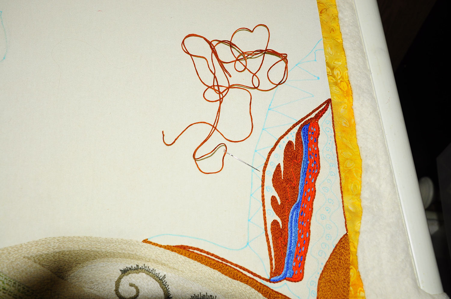 It’s way past time to get back to work on the Tree Quilt. It’s been so long, I don’t even remember what I had planned to do with the bit all the way to the right, where I last left off. Oh well.
