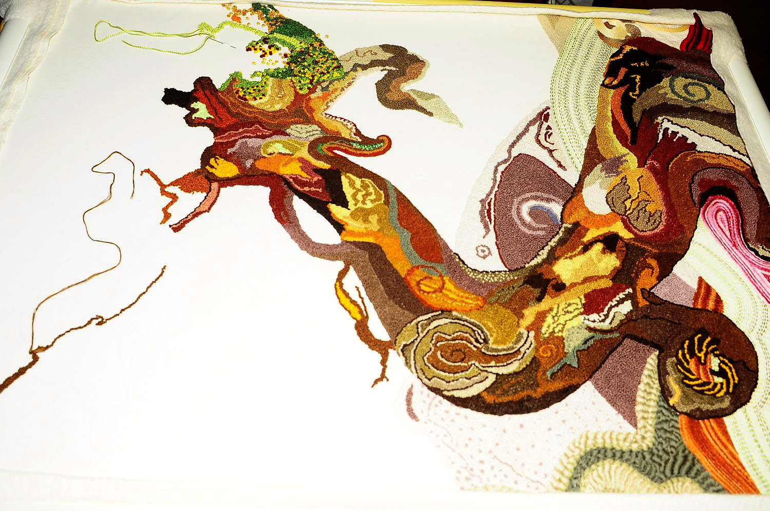 11.5 inches of trunk/branch done, 6 more to go. Current Hours: 1,163. Skeins Used: 181. Click for full size.