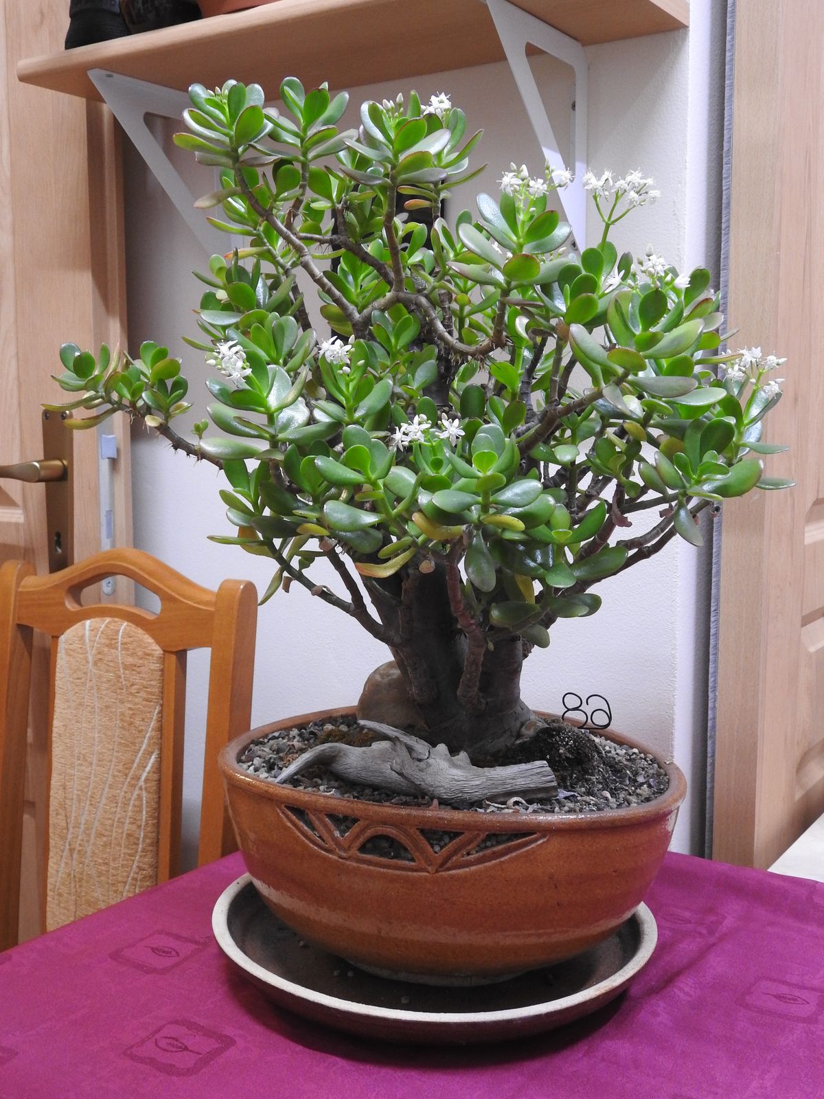 This is one of my most precious bonsai trees – Crassula ovata. My mother has got the plant before I was born and she tells me it was already relatively big at that time. It is therefore safe to assume the tree is at least circa 50 years old. I started converting it to bonsai about twenty years ago. It continues to grow succesfully each year after pruning, and in case you wish to start growing bonsai yourself, this species is ideal for a beginner. It responds well to pruning, it grows quickly but not too much so, insects do not infect it much, and if you forget to water it from time to time, nothing happens.