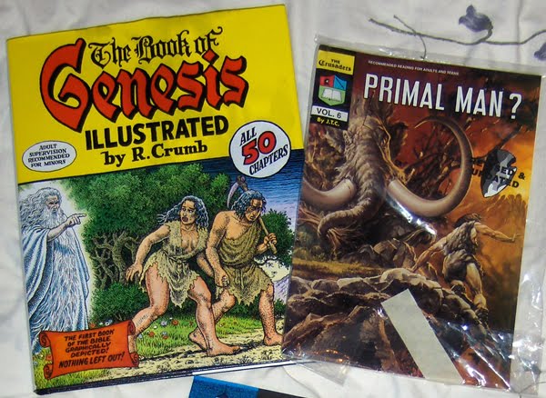 That’s not all. Like a sign from some sort of atheist God (shhh, it doesn’t need to make sense) the box came with a free copy of a Crusaders comic. Which one? Primal Man?, the comic on evolution. Just too perfect. And if that wasn’t enough, they bought me R. Crumb’s Illustrated Book of Genesis, which I started reading during the car ride home. Simply awesome.
