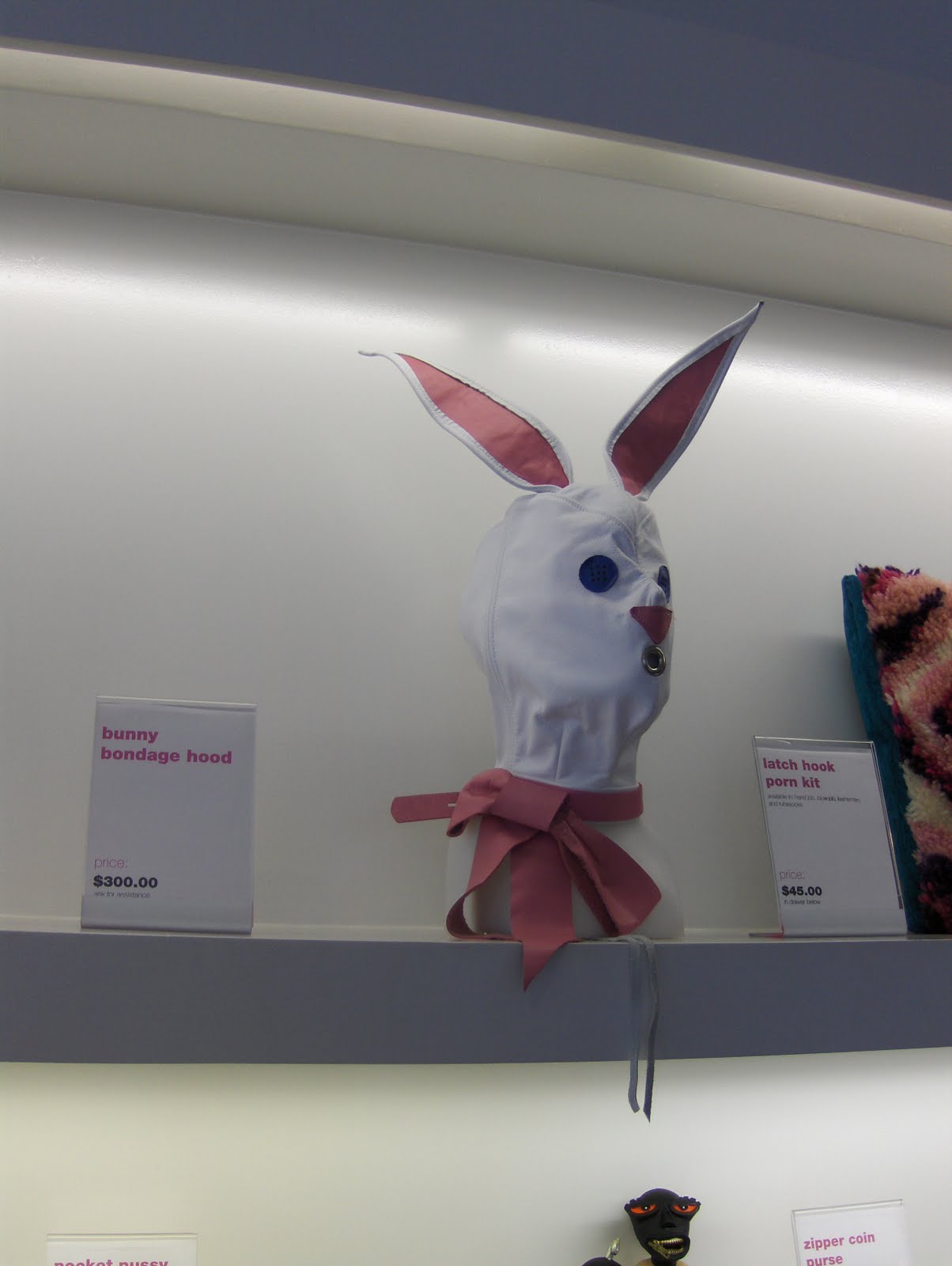 The gift shop alone was worth the visit. It included everything from sex books and sex toys, to sex themed plates to this horrifying bunny bondage mask:I thought the Donnie Darko bunny mask was as scary as it gets. I was wrong.