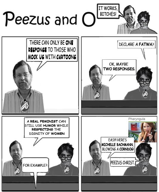 What is your problem with the cartoons? PZ was being quoted and Ophelia Benson is the voice of reason?