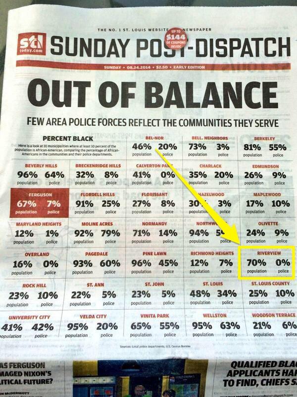Well, I now see another argument for increasing diversity such that police forces have more than just three or four black officers. (St Louis Post-Dispatch cover image)
