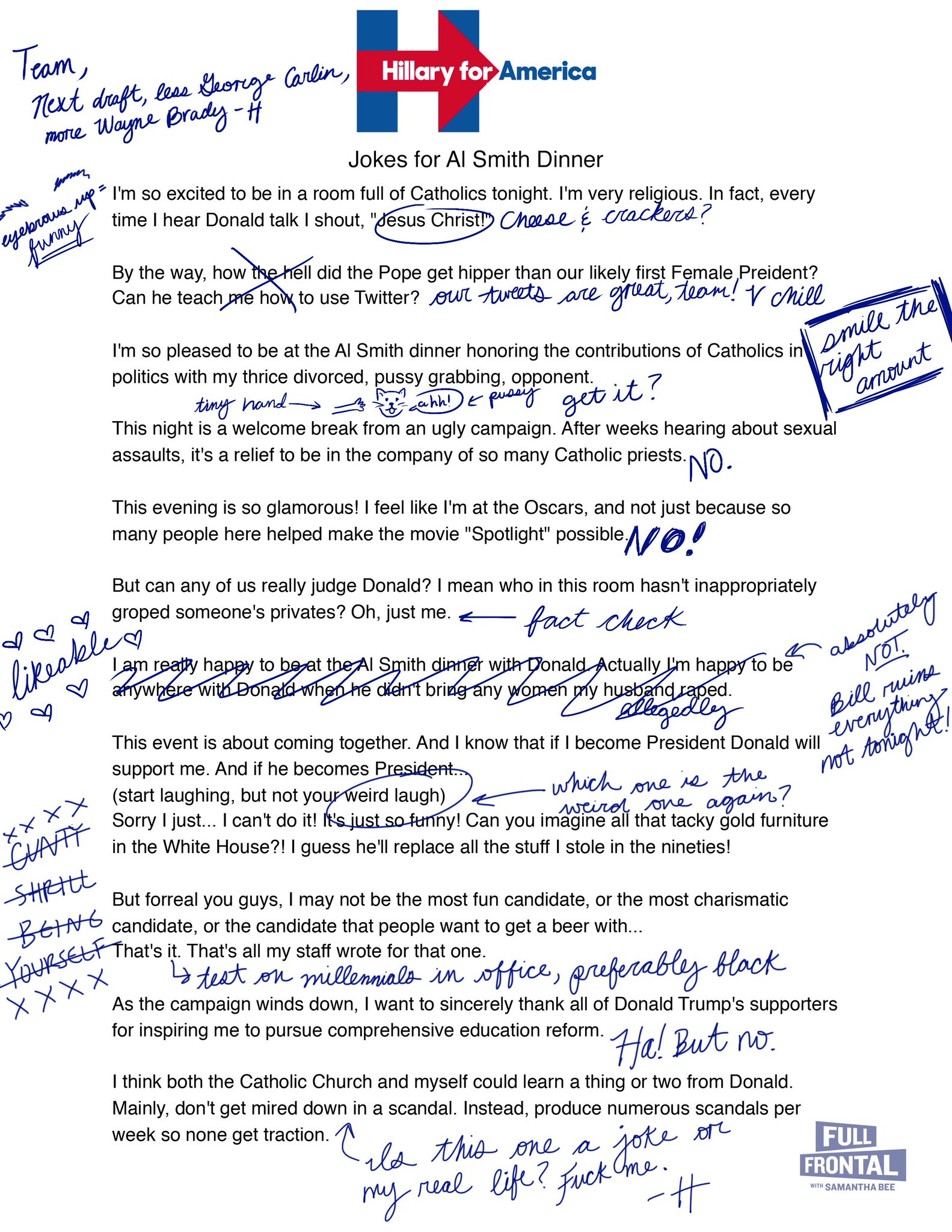 That WaPo link also mentions “the bad” and “the even worse” Hillary jokes, but they’re really not that bad. She did have her best jokes nixed though, regrettably, as per the Wikileaks-leaked document: https://pbs.twimg.com/media/CvOhu9qWYAEUvsC.jpg:large