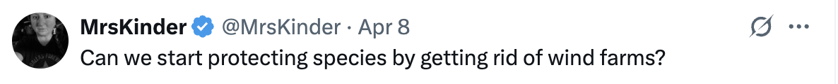 No, MrsKinder, you’re an outrageously stupid cultist, and wind farms aren’t causing extinctions. Stop trusting the crap pouring out of Trump’s mouth.