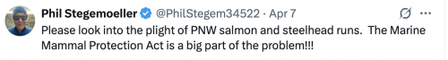 Please look into the plight of PNW salmon and steelhead runs. The Marine Mammal Protection Act is a big part of the problem!!!