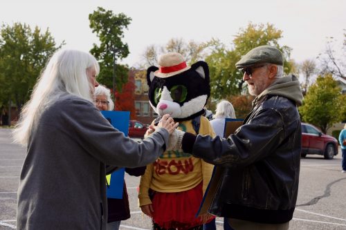 We had a good turnout, somewhere around 100 people, despite the damp gray morning and intermittent rain. We had one cool cat show up, there was also a dinosaur somewhere in the crowd.