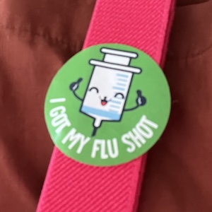 Yesterday, I took advantage of the university health clinic to get both my flu shot and my COVID shot. The important part is that I got my sticker.