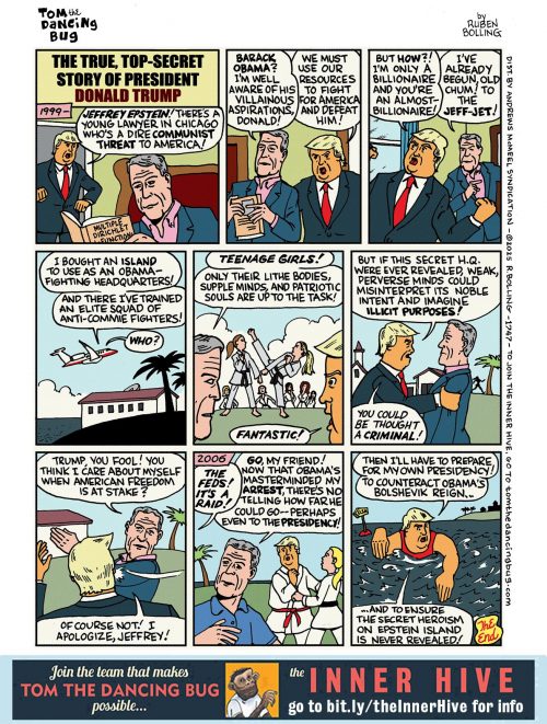 Reginald Selkirk says 14 November 2025 at 6:29 pm Cannot make this shit up. At Trump’s urging, US Justice Department to probe Epstein ties with Democrats