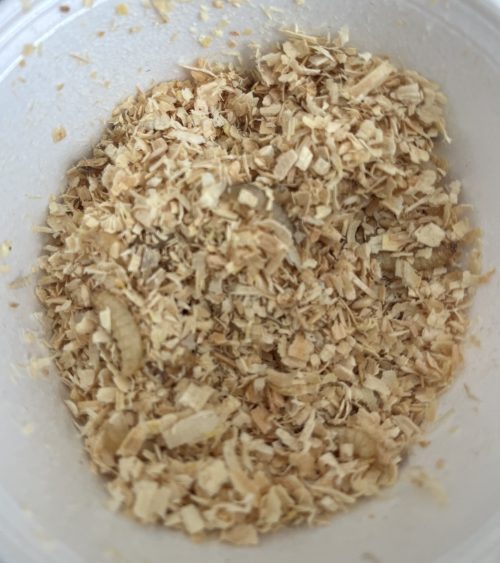 Ice fishing season to the rescue, just in the nick of time! This time of year a popular bait is the lowly wax worm, so I was able to get a few dozen quite cheaply at the local bait shoppe.