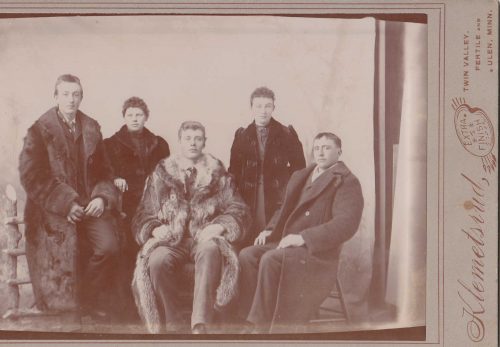 It’s unpleasantly cold this morning, and I was reminded of this old photo from the early years of the 20th century. That’s my great-grandfather Peter on the far left, with his sisters Karen and Marie, and his brothers Ole and Iver. I’m just impressed with their coats; I’d take any of the men’s coats right now. They knew how to dress for a Minnesota winter!