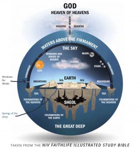 , where does the Bible talk about the atmosphere? Where does it even mention outer space? The ancient authors of the books that would be incorporated into the Bible thought we lived in a bubble of air encapsulated in a solid firmament, embedded in a universe that was full of water. It’s a bad idea to reference the Bible when trying to describe the cosmic geography.