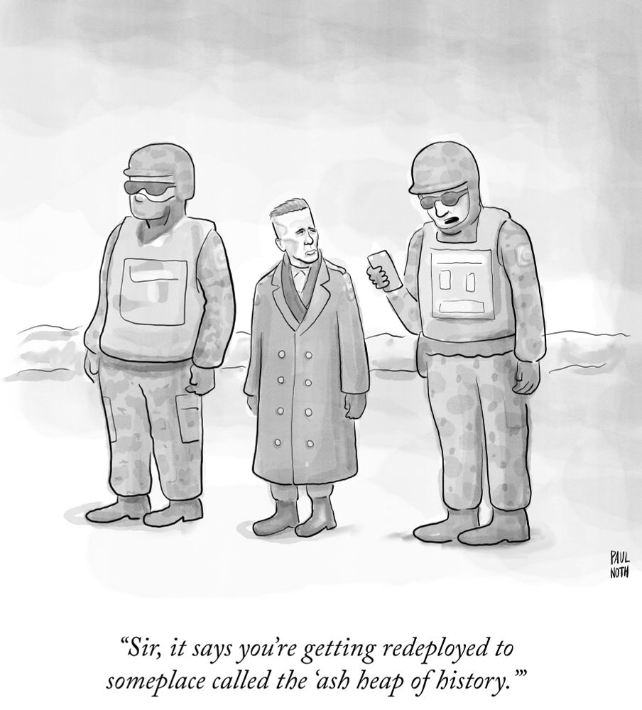 Unfortunately, or fortunately, Bovino is being replaced by Tom Homan, a slobbering lunk who talks like he has a mouthful of marbles — or something — and is going to be equally easy to caricature. Isn’t it remarkable how so many of the Trump acolytes are like goofy comic book villains, with their ready suite of silly features? It’s Dick Tracy or Batman all over again.
