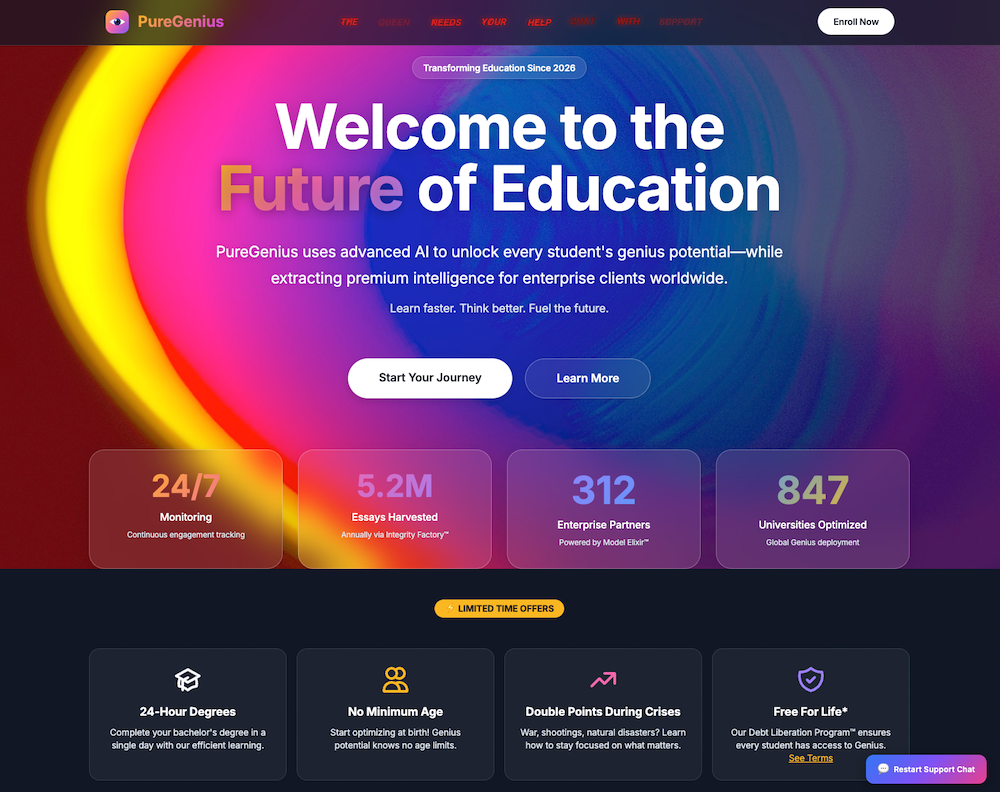 In case you can’t tell, this is a satire site mocking all these nobodies who are selling “education” as a commodity without bothering with the “teaching” part — that’s hard, you know, but marketing degrees and the illusion of skills is a good way to make money.